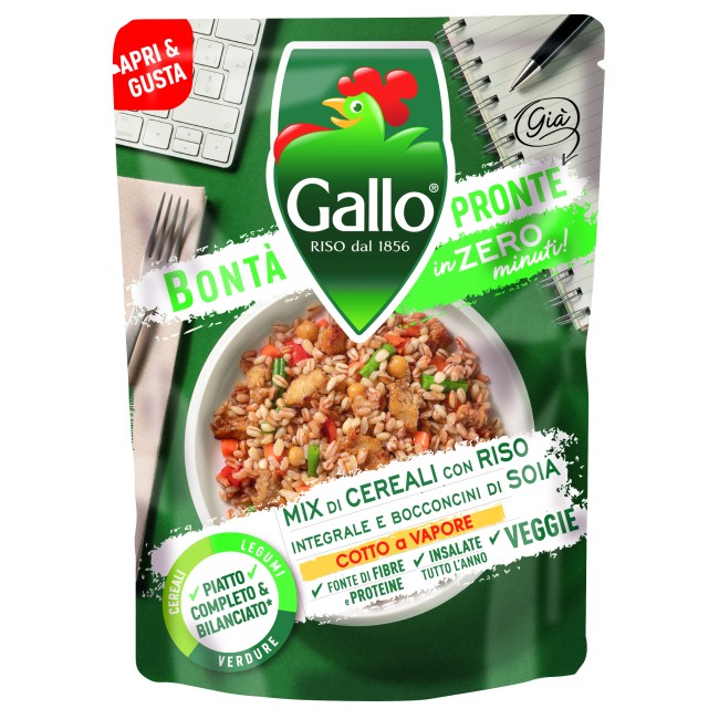 Состав:Рис, овощи (морковь, цукини, лук, перец), соя, соль, томатные гранулы, чеснок, петрушка, базилик, сельдерей, рисовая мука, экстра вирджин оливковое масло, кукурузный крахмал, мисо (соя, рис, соль, койи), экстракт дрожжей, специи