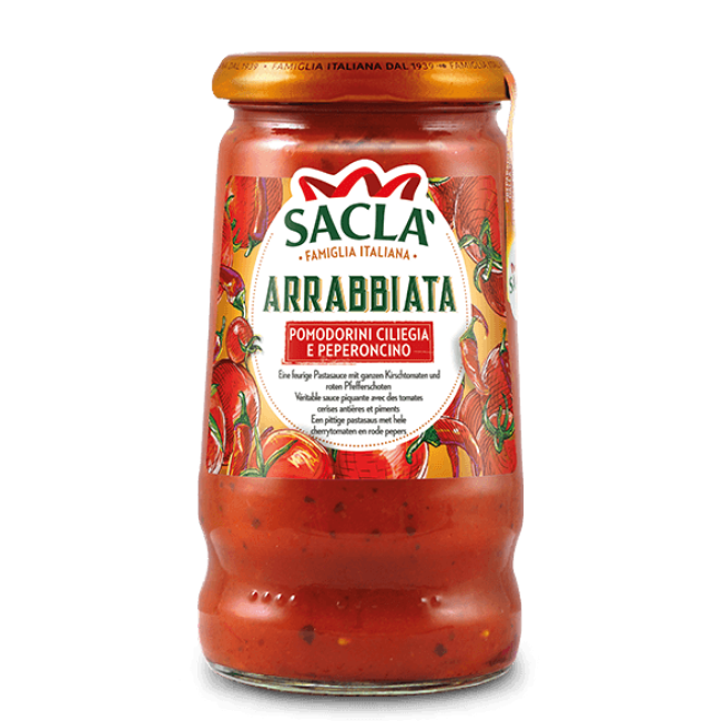Sacla Arrabbiata — классический итальянский соус с характерной «сердитой» остротой, благодаря щедрой порции красного перца чили. Готовится по традиционному рецепту с использованием спелых томатов, чеснока, лука и оливкового масла первого отжима. Идеален для подачи с пастой (особенно пенне), ризотто, мясом, морепродуктами и овощами. Также подходит как пикантная заправка для салатов или основа для горячих блюд. Не содержит глютен, подходит для вегетарианцев. Упакован в стеклянную банку объёмом 420 г.