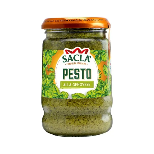 Sacla Pesto Genovese — это классический итальянский соус, приготовленный по традиционному генуэзскому рецепту. В основе — свежий базилик, выдержанные сыры (пармезан и пекорино), орехи и чеснок, смешанные с подсолнечным маслом до получения однородной, ароматной массы. Идеален для подачи с пастой, ризотто, картофелем, бутербродами, мясом, овощами и как основа для соусов и маринадов. Формат 190 г — удобен для домашнего использования. Не содержит глютен, подходит для вегетарианцев.
