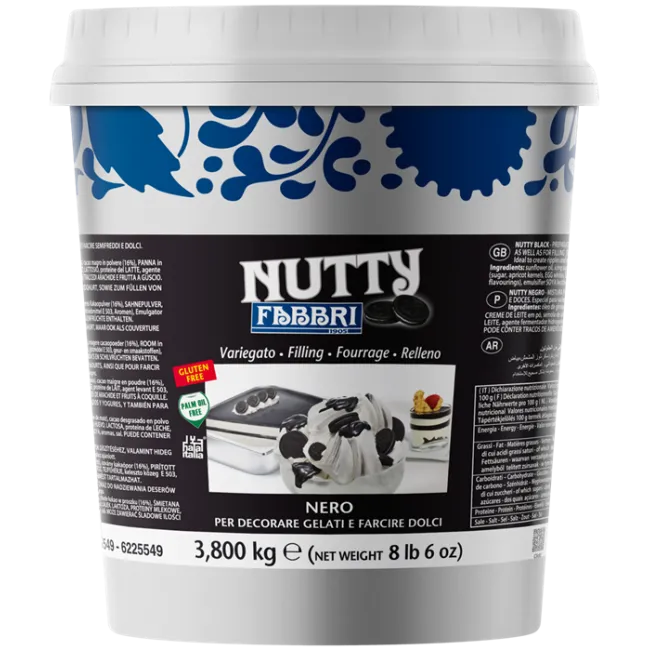 Variegato Nero Nutty 3.8 kg — это премиальная кремовая паста от Fabbri, разработанная для профессионального использования в кондитерском деле и производстве мороженого. Насыщенный вкус темного шоколада в сочетании с тонкими ореховыми нотками создает глубокий и изысканный профиль, который идеально дополняет мороженое, десерты и выпечку, придавая им роскошный и аппетитный вид.