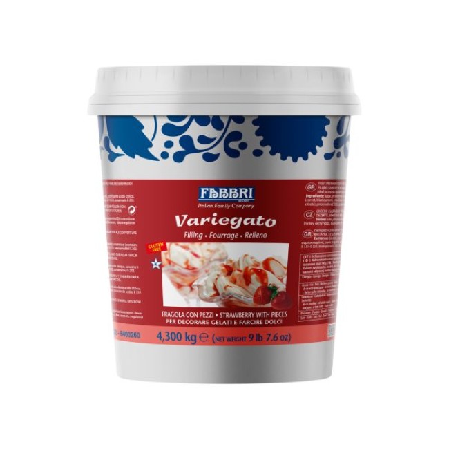 Fabbri Variegato Strawberry Pieces – это профессиональный фруктовый наполнитель с натуральными кусочками клубники. Он отличается ярким вкусом спелых ягод и аппетитной текстурой, которая делает десерты ещё более привлекательными и насыщенными.