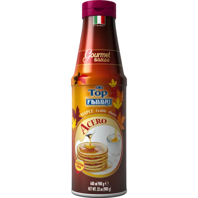 Fabbri Gourmet Sauce Maple — профессиональный кленовый соус с насыщенным вкусом и ароматом, созданный для украшения и ароматизации десертов, мороженого, кофе, коктейлей, молочных напитков и выпечки. Обладает гладкой текстурой, тёмно-бронзовым цветом с янтарными отблесками и стойким ароматом карамелизированного сахара, древесной смолы и пряных специй. Идеален для подачи с панкейками, вафлями, чизкейками, мороженым, латте и холодными кремовыми десертами. Не содержит глютен, подходит для вегетарианцев. Упакован в удобную бутылку с дозатором и мембраной «анти-капля» для точного нанесения и гигиеничной подачи.