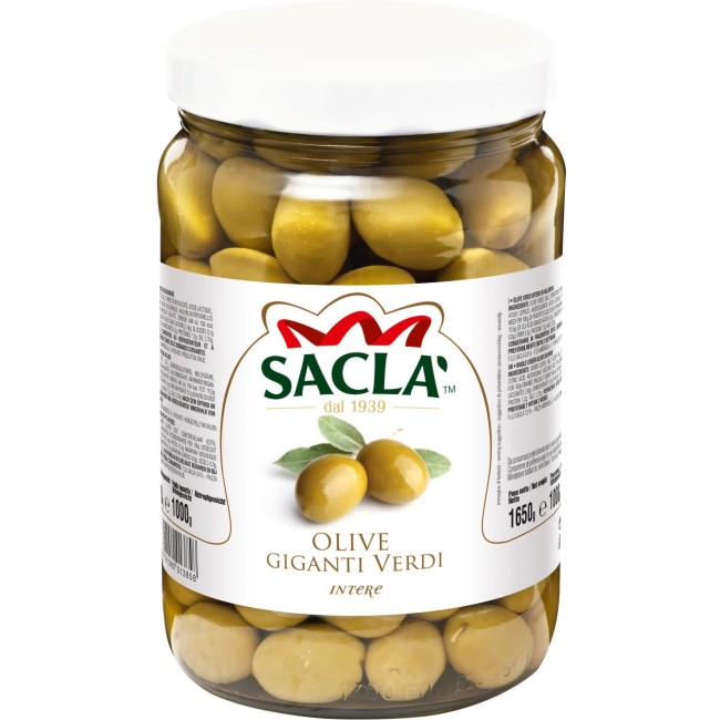 Sacla Gigante — целые зелёные оливки гигантского размера, которые впечатляют своим видом и насыщенным вкусом. Отличный выбор для ресторанов, банкетов и фуршетов.