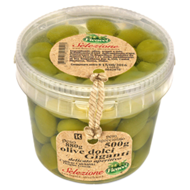 Romeo Ficacci Halkidiki — греческие цельные зелёные оливки сорта Халкидики. Они славятся своим крупным размером, мясистой текстурой и ярким, слегка солоноватым вкусом.