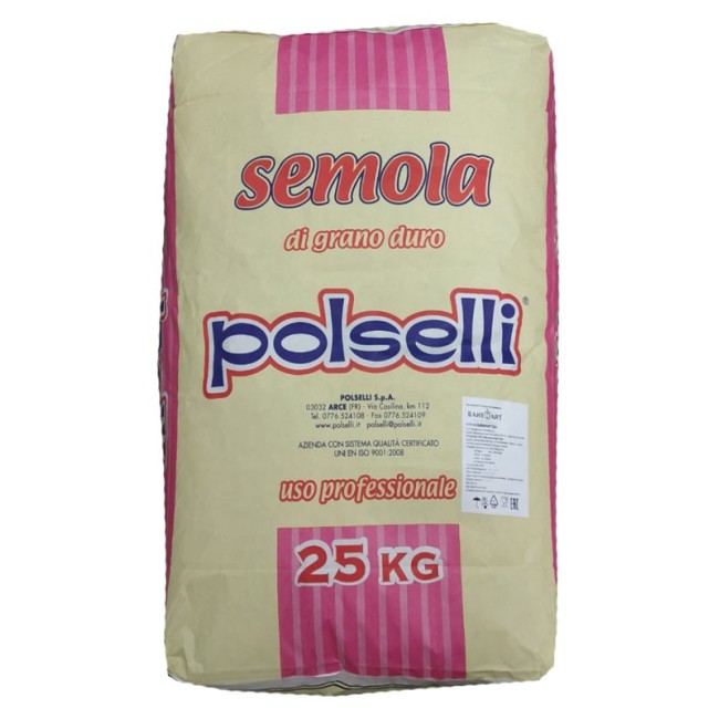 Polselli Semola Pasta Flour 25kg — оптовая грубая семоля для производства пасты, с отличной абсорбцией и текстурой. Подходит для больших объёмов, обеспечивает пасту жёлтый оттенок и прочность. Формат 25 кг для пекарен. Без ГМО.
